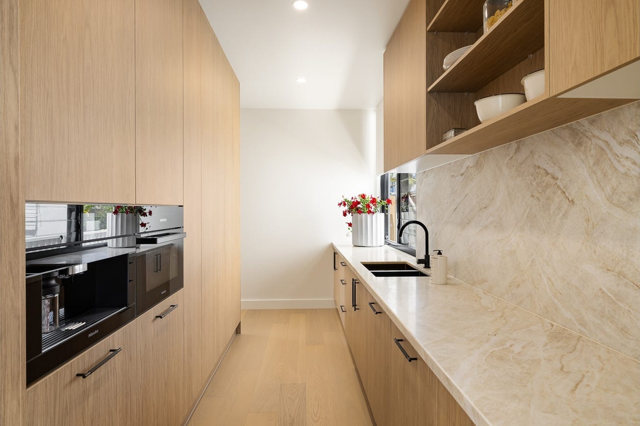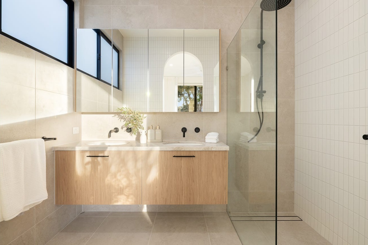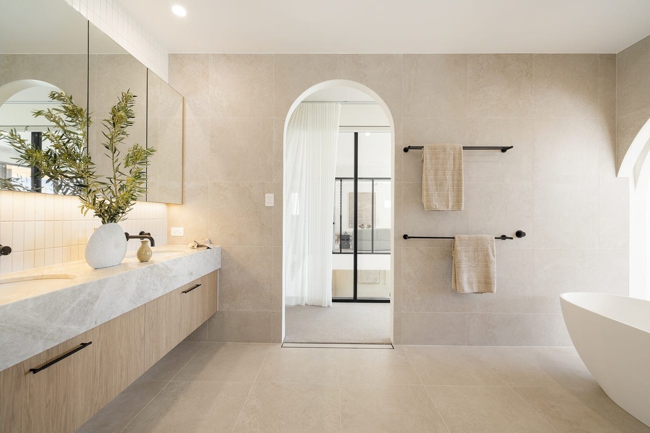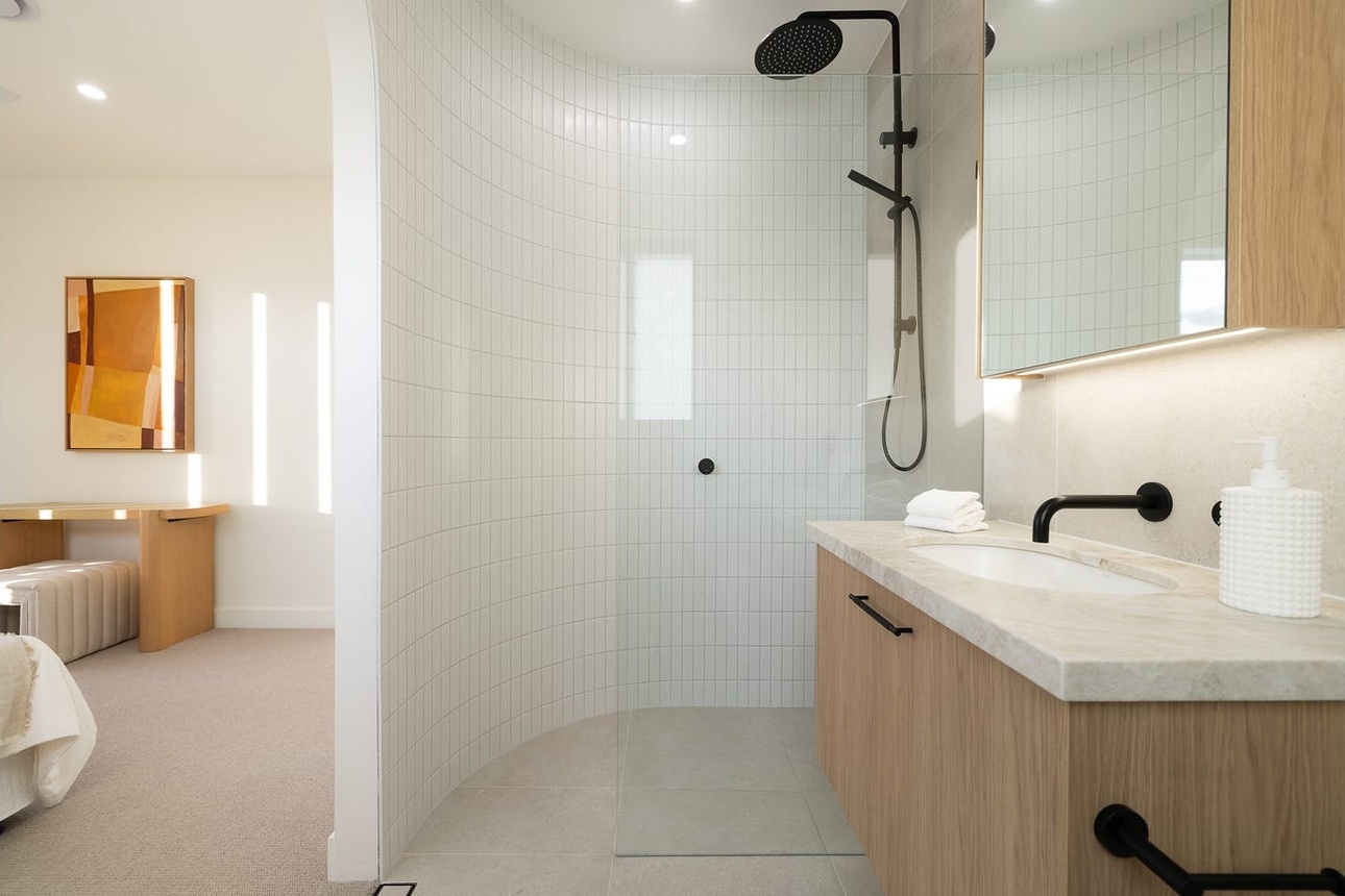 Warm timber soffits and raw stone thresholds ground a contemporary family home designed around openness, texture and effortless poolside entertaining.