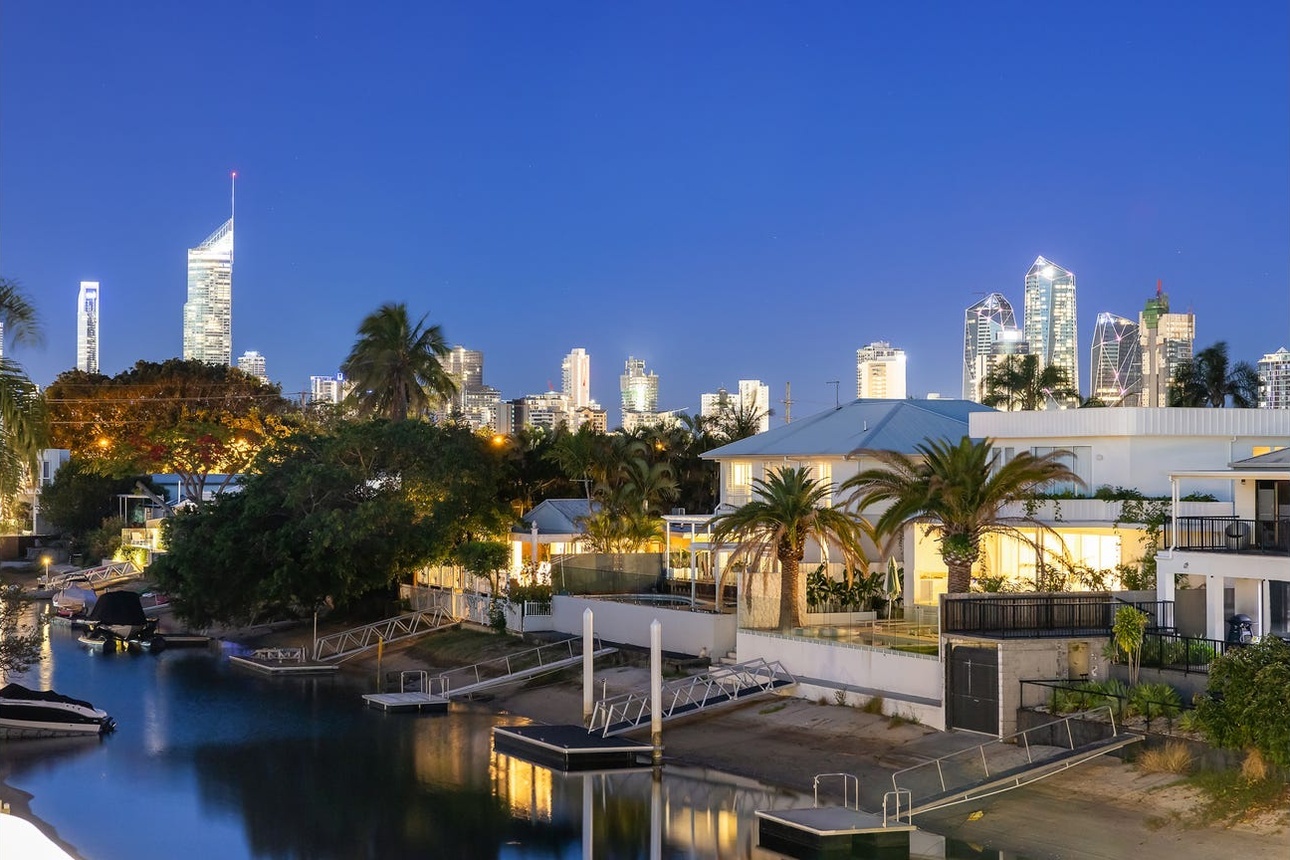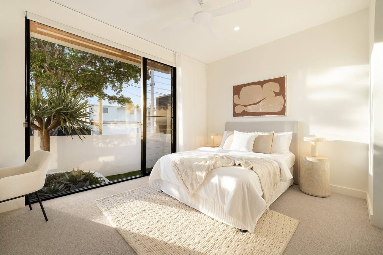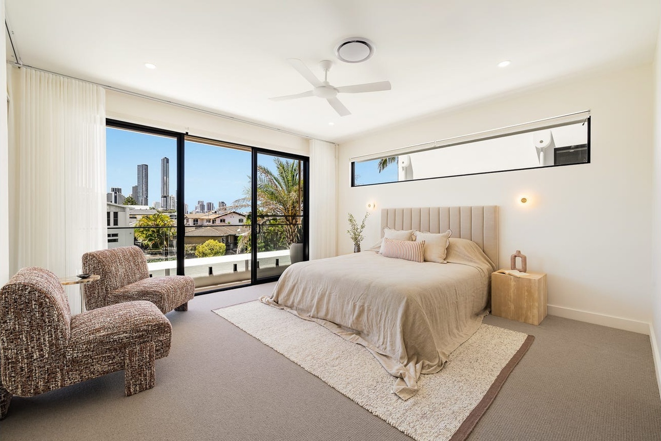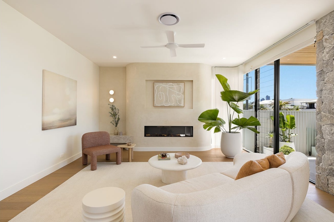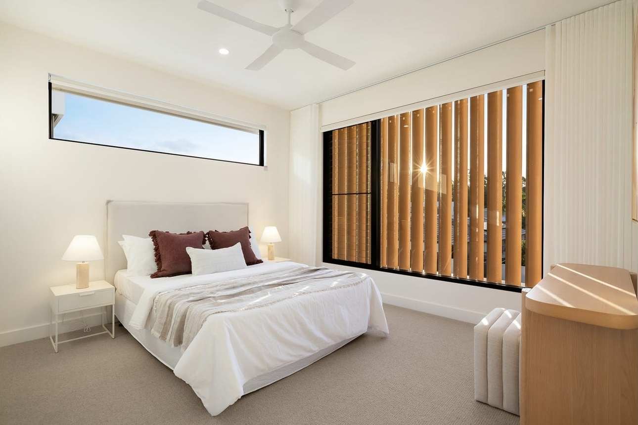 A refined two-storey residence where natural stone, timber screening and generous glazing converge to create seamless indoor-outdoor living framed by tropical landscaping.