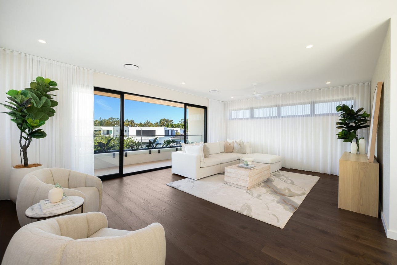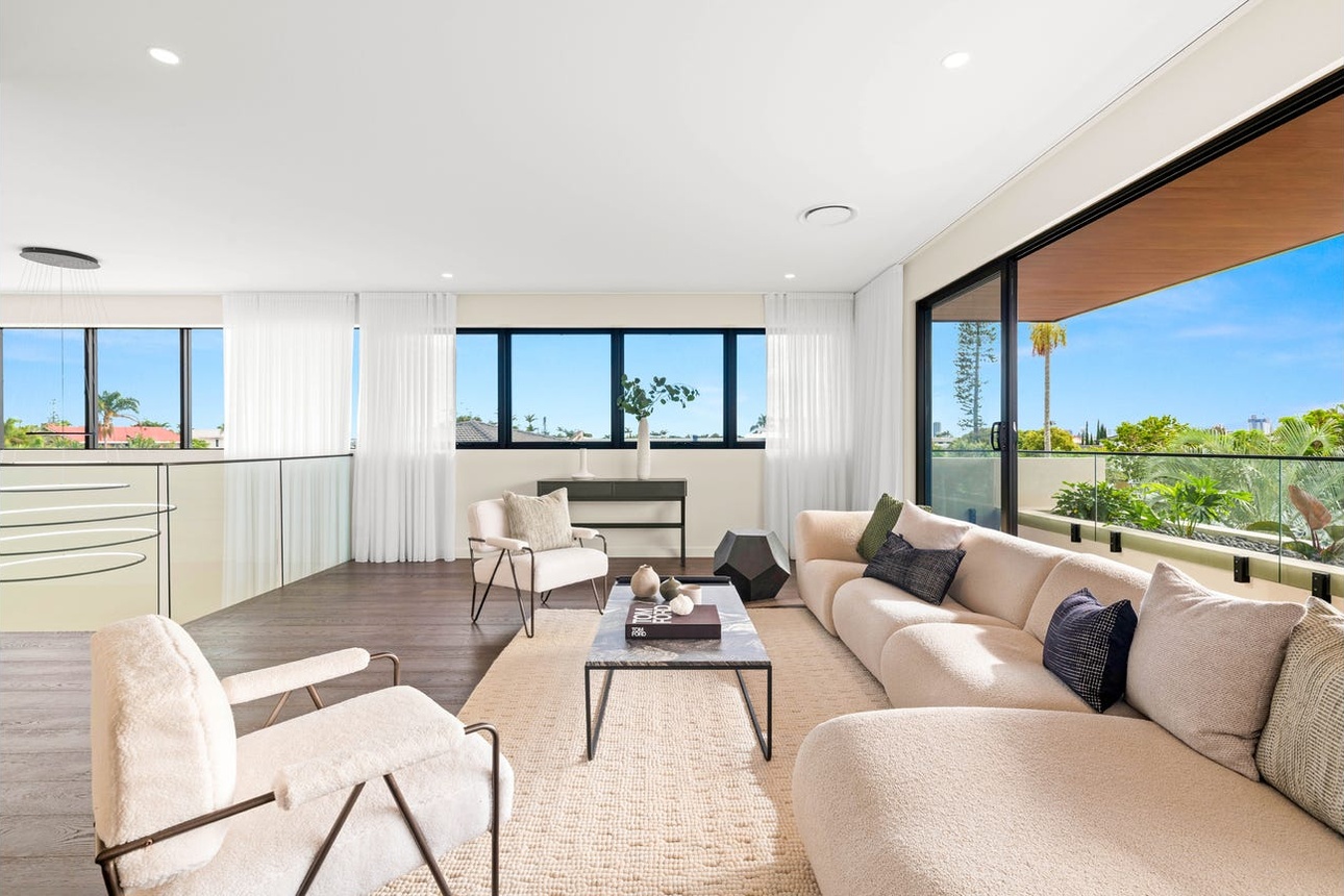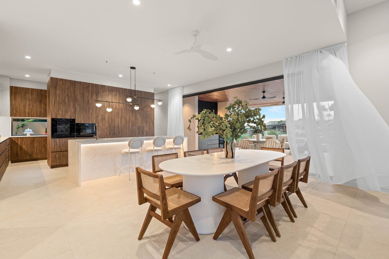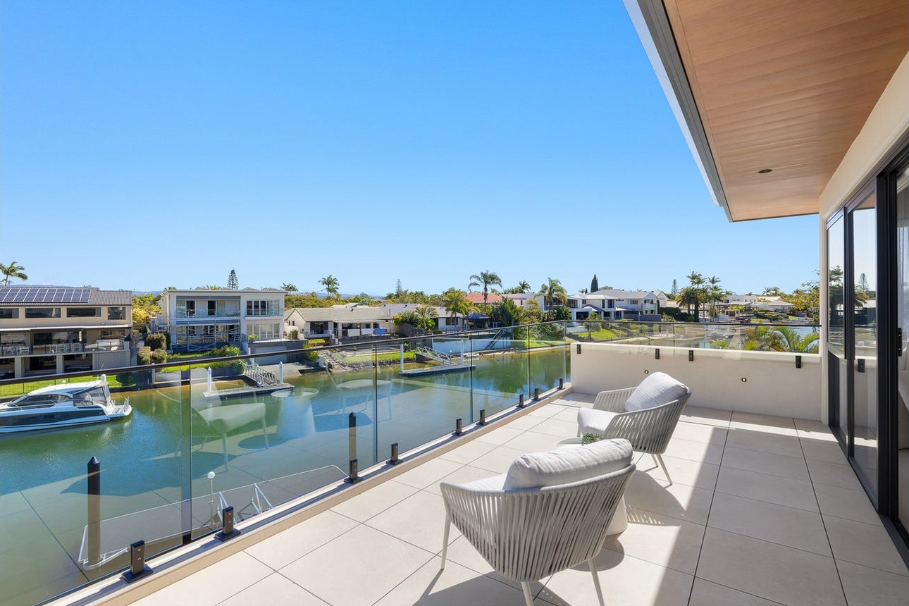 A waterfront home of generous proportion where timber-lined alfresco spaces, full-height glazing and a sunlit pool terrace frame an effortless canal-side life.